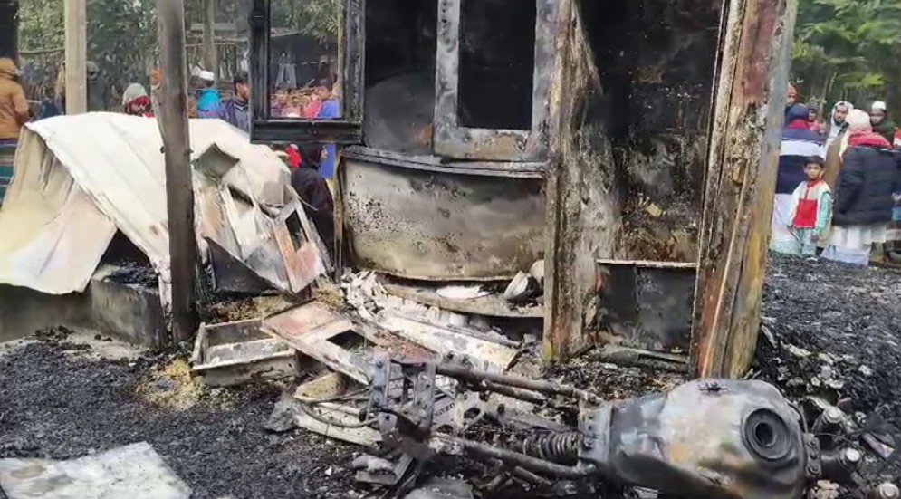 স্থানীয়রা জানান, অগ্নিকাণ্ডে ঘরে থাকা নগদ টাকা, একটি মোটরসাইকেল এবং ব্যবসার মালামাল সম্পূর্ণ পুড়ে গেছে। ঘটনার পর থেকে এলাকায় চরম উত্তেজনা বিরাজ করছে।