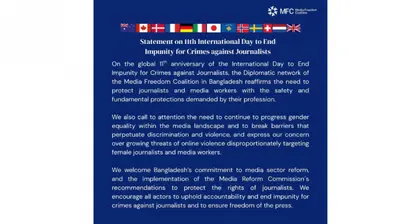 বিবৃতিতে উল্লেখ করা হয়, ২০২৪ সালের ‘অভ্যুত্থানে’ অধিকাংশ মুদ্রণ গণমাধ্যম সাহসিকতার সঙ্গে তথ্য তুলে ধরে জনমত গঠনে গুরুত্বপূর্ণ ভূমিকা রেখেছে। আওয়ামী লীগের দীর্ঘ শাসনামলে সাংবাদিকরা নানা নিপীড়ন ও হয়রানির শিকার হয়েছেন। ‘অভ্যুত্থান’ চলাকালে রাষ্ট্রীয় বাহিনীর হত্যাকাণ্ড, মানবাধিকার লঙ্ঘন ও ইন্টারনেট ব্ল্যাকআউটের মতো বিষয়গুলো গণমাধ্যম সাহসের সঙ্গে তুলে ধরেছে।