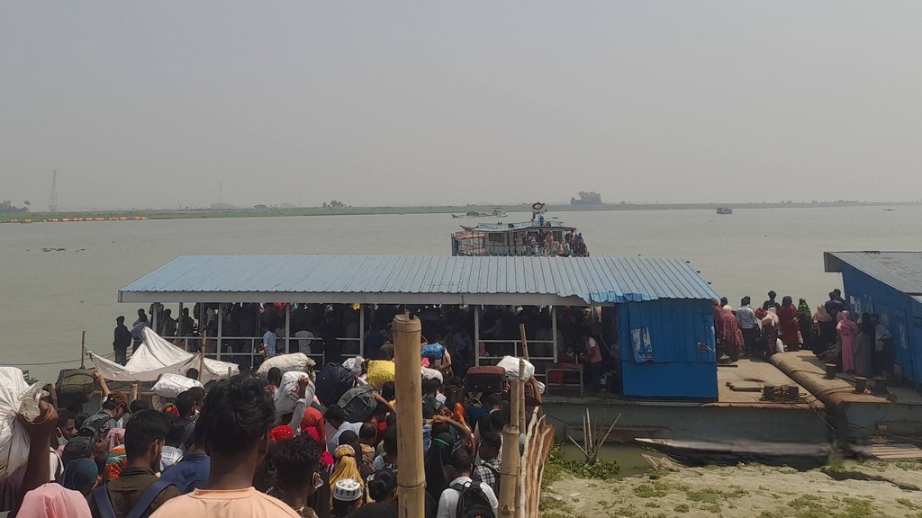 রাধানগর এলাকা থেকে পরিবারের সদস্যদের নিয়ে ঢাকায় ফিরছিলেন ফাহিমুল কবির। তিনি বলেন, “একা হলে হয়তো কোনোভাবে যাওয়া যেত, কিন্তু পরিবার নিয়ে এ অবস্থায় দীর্ঘ সময় অপেক্ষা করা খুবই কষ্টের।”