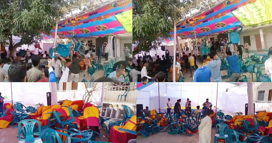 শনিবার দুপুরে সেই আশঙ্কাই সত্য হয়। উপদেষ্টা আসিফ মাহমুদ সজীব ভুঁইয়া অনুষ্ঠানস্থলে পৌঁছানোর আগেই প্রায় পাঁচ শতাধিক উত্তেজিত জনতা কাচিরচর-সাহেবেরচর দাখিল মাদরাসা প্রাঙ্গণে স্থাপিত উদ্বোধনী প্যান্ডেলে হামলা চালান। তারা চেয়ার-টেবিল, মঞ্চ, ব্যাকড্রপ এবং নতুন নামফলক ভাঙচুর করেন। প্রশাসনের উপস্থিতিতেও পরিস্থিতি নিয়ন্ত্রণে আনা সম্ভব হয়নি। ফলে উদ্বোধনী অনুষ্ঠান পণ্ড হয়ে যায়।