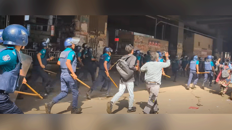 পুলিশের লাঠিপেটা ও সাউন্ড গ্রেনেড