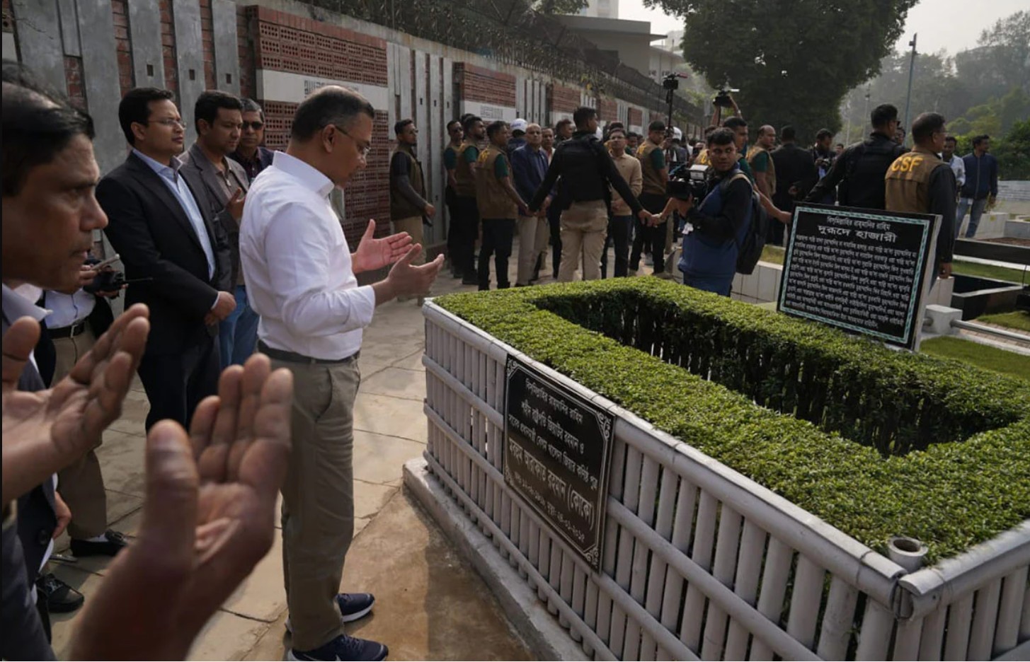 শরিফ ওসমান হাদির কবর জিয়ারতের পর তারেক রহমান জাতীয় কবি কাজী নজরুল ইসলামের কবরেও শ্রদ্ধা জানান। সেখানে কিছুক্ষণ নীরবে দাঁড়িয়ে দোয়া ও মোনাজাতে অংশ নেন তিনি।